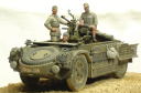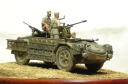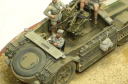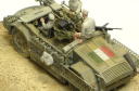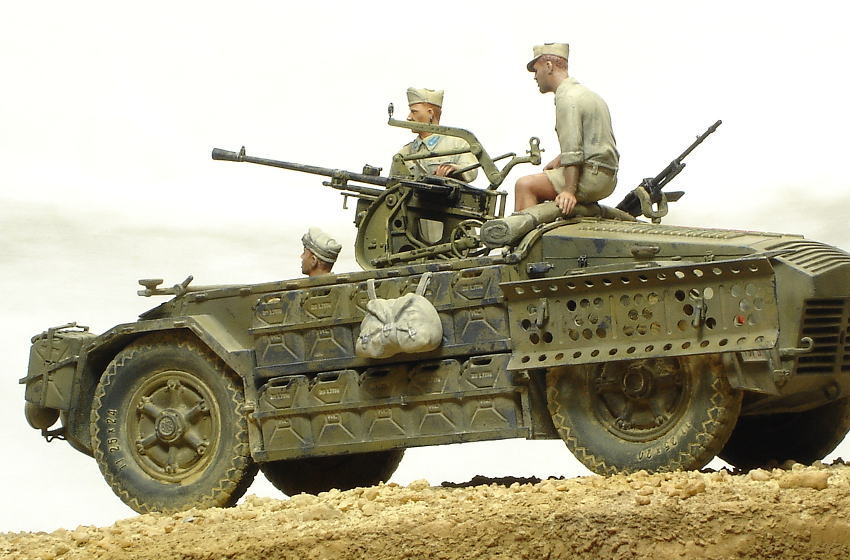 イタレリ 「カミオネッタ AS42 `サハリアナ`」 1941年、北アフリカの枢軸軍はイギリス軍のジープやトラックで編成された遊撃部隊に悩まされ、イタリア軍は対抗策として同じような遊撃部隊を編成する事となり、その為の長距離単独行動のできる「武装トラック」として本車は開発されます。 シャーシは「AB41」のものを利用しており、長期間の作戦にも対応できるよう飲料水と燃料のジェリカンを車体に24缶搭載できるようになっています。 初陣は1942年夏で、アフリカ戦線撤退後もイタリア本国の防衛戦に参加しており、1943年末には東部戦線にも投入され活躍しています。 主武装は20mm対空機関砲搭載タイプと47mm対戦車砲を搭載したタイプがあります。 <キット内容> レジン製のフィギュアにエンジンパーツ、エッチングパーツが付き、写真資料集まで付いている豪華な内容!・・・ではありますが、全体の出来としては今一つ。 イタレリ特有のモサッとした大味な感じが目に付きます。 機関砲は上下動は可能ですが旋回させるには工夫が必要。 付属の各エッチングは扱いにくいので、プラバン加工のできる人なら自作パーツに置き換えたいところ。 <追加製作> 製作記録 フィギュアは3体ともドラゴンのドイツアフリカ軍団から改造。 ヘッドはホーネットの「HIH03」から。 車体側面にぶら下がっている雑嚢はタミヤのフンクワーゲンに付属のオマケ。 機関砲のガンサイト(照準)はエデュアルドの「35161 M13/40用」から使用。 尾灯は適当な大きさの余り物のクリアパーツで再現。 前照灯、警笛の配線を真鍮線で追加。警笛はタミヤのドイツ戦車用に交換。 つるはし、スコップの止め具をそれらしくデッチアップ。 <簡易データ> 生産時期:1942〜 生産総数:約200輌 最大速度:84km 乗員:4名 武装:20mm機関砲×1、8mm機銃×1 |