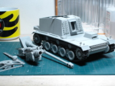| 砲袈も細かいですねぇ。 でも、組み立ては非常にスムーズです。 パーツ割が良い証拠です。 |
