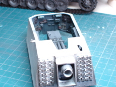| オープントップの命とも言える戦闘室内部もバッチリ。 実車資料の少ない中、よくここまで再現したものです。 備品自体も「タミヤ」「ドラゴン」に引けをとりません。 |