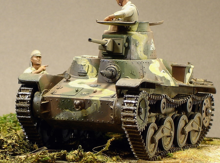 傑作戦車として絶賛され、中国戦線や南方作戦の序盤では大活躍しますが、そのまま太平洋戦争に突入し航空機の開発生産が最優先されたため、後継車の開発が遅れ、急激に変化する戦況の中で既に旧式化してもなお終戦まで第一線で使用されています。